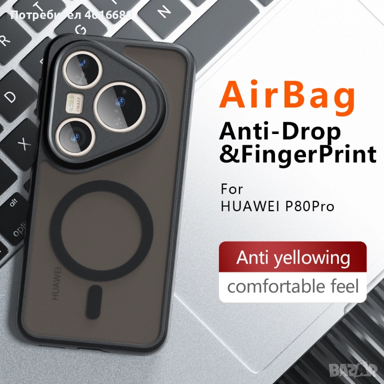 Калъф PureFrost MagSafe - Pura 80 Ultra - Frosted Black → Обява 52810975