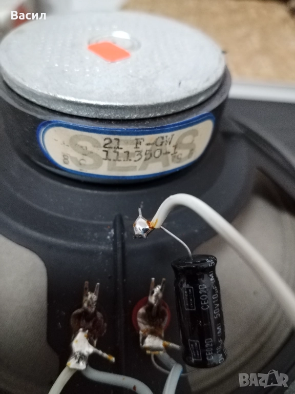 Тонколони с 8" бас Seas,среди Seas и високи на Philips.Модела на говорителите е на последните снимки.Гофрите им са от текстил промазани с нещо лепнещо.Отлично запазени.С много детайлно звучене.Алуминиев кант на ъглите.Поставени хубави терминали(оригинално беше с кабели).