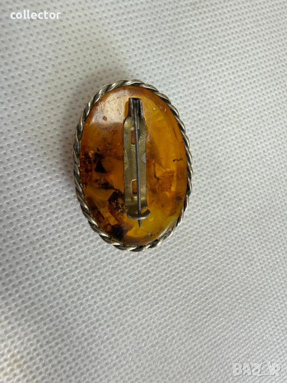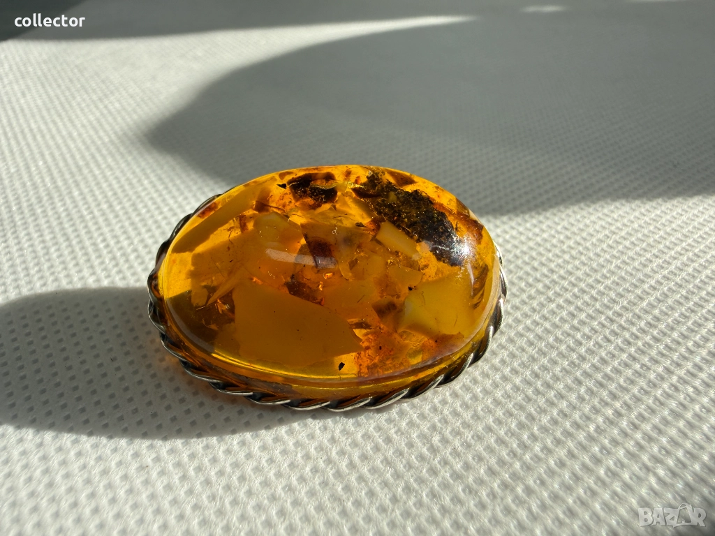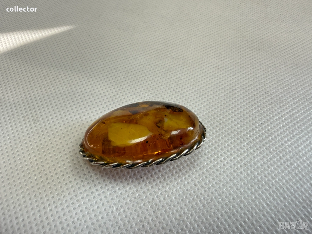 Красива брошка с естествен шлифован кехлибар. Добро запазено състояние.