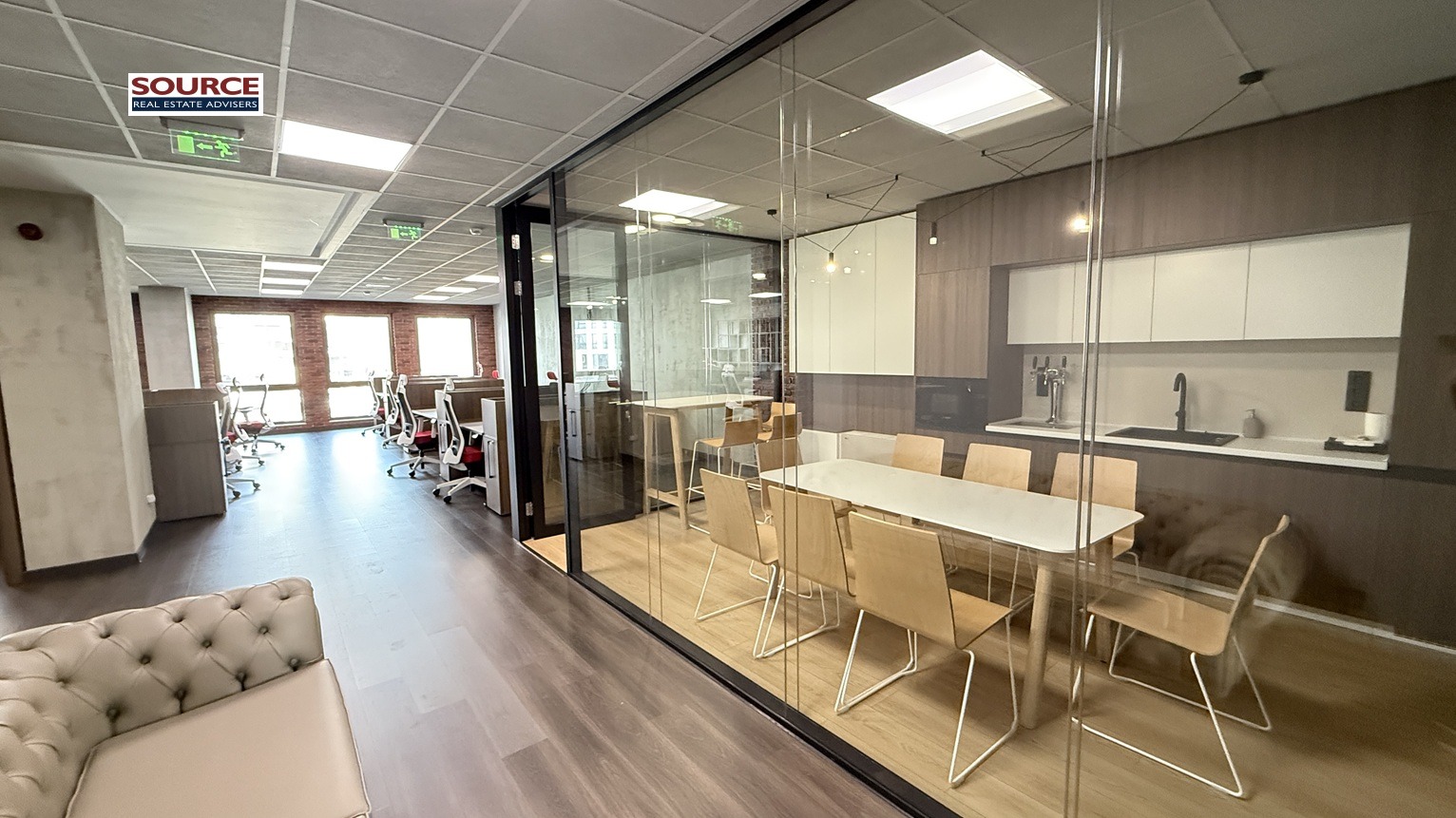 4. Офис обзавеждане: Офисът се отдава обзаведен с обзавеждането на снимките. Може да се наеме и необзаведен.