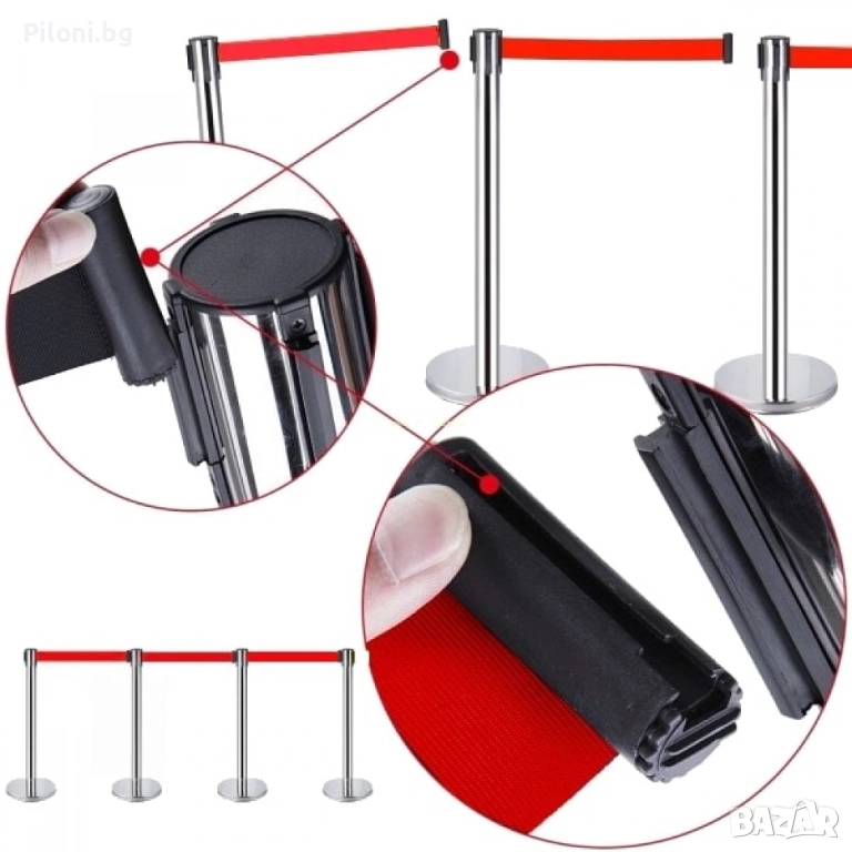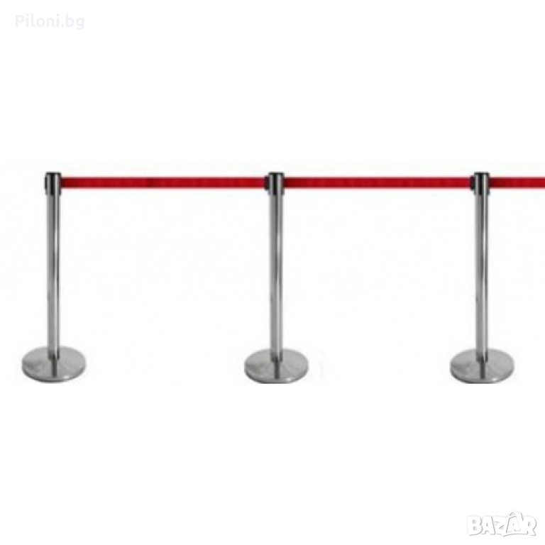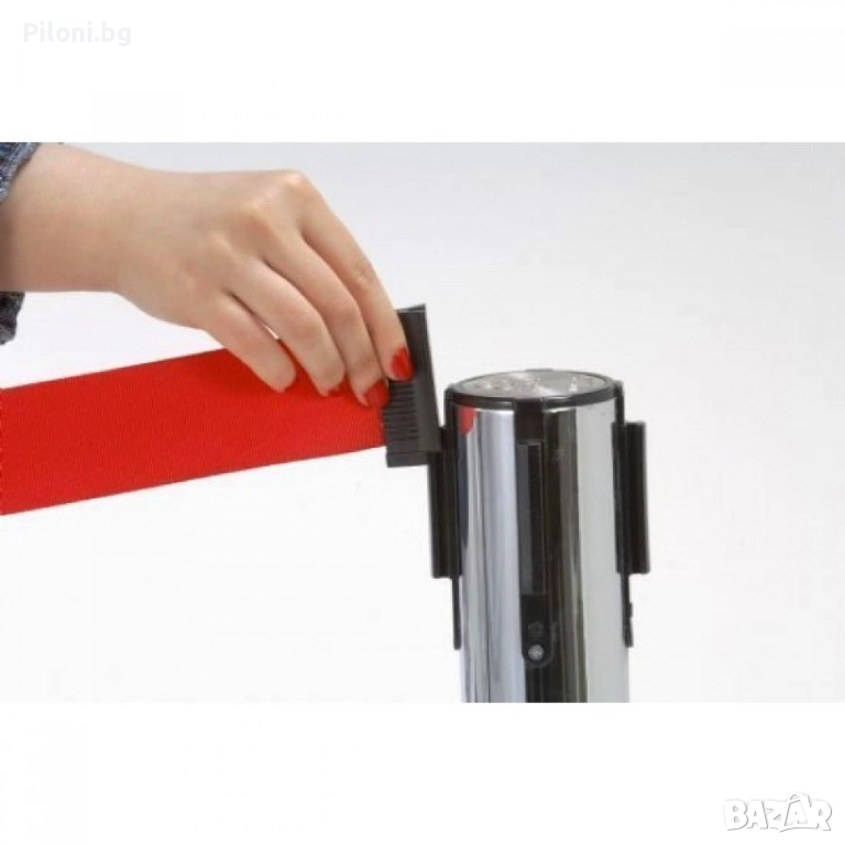 Стабилен и елегантен хромиран ограничителен стопер с червена лента. Лентата е вградена в стопера, изтегля се и се закача за следващото ограждение. Могат да бъдат свързани в произволни форми. Произведени са от полирана стомана, издръжливи и лесни за почистване. С помощта на тези стопери ще може да ограничите определена зона или да забраните достъп до нея, както и да използвате огражденията за указване на посоката в зали, ресторанти, банки, хотели, конференции и събития и други мероприятия. Лентата може да се опъне до размерът, който е необходим - макс. 220 см. Височината им е 90 см. с диаметър на основата - 34.5 см., дъното е полимерно, не се пързаля дори и при мокър под. Тегло - 6.5 кг. Предназначени са предимно за вътрешна употреба.