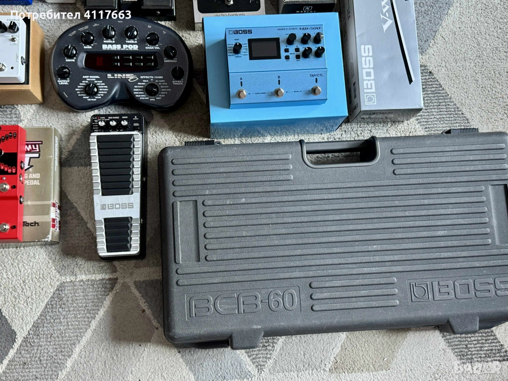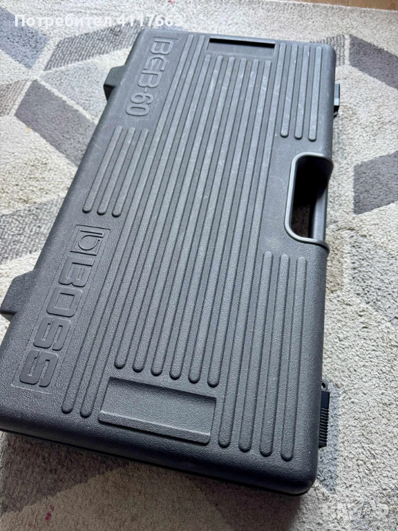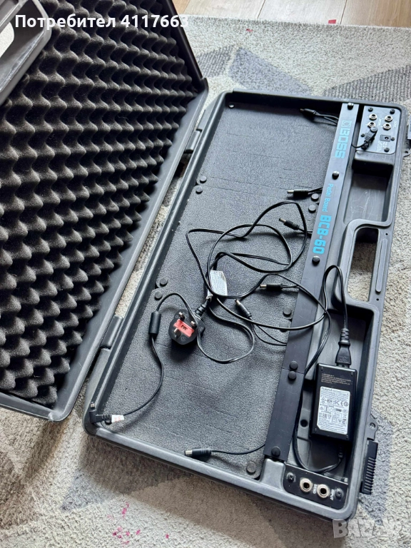 Boss BCB-60 – Педалборд – Със захранване. Парче от уплътнението за педалите липсва, но може да се използва велкро за да се закрепят педали към корпуса – 160лв.