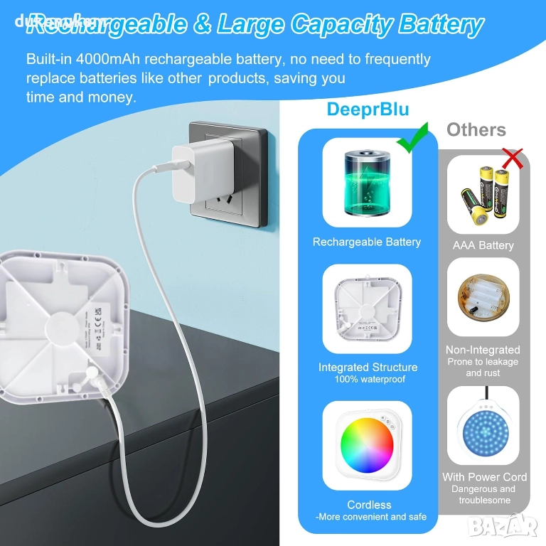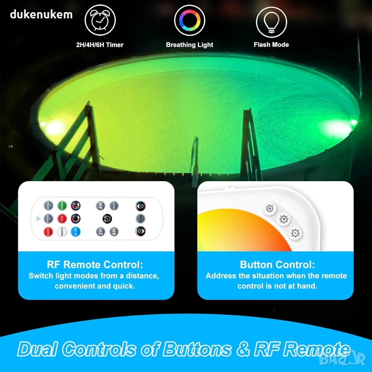 LED осветление за басейн, акумулаторно, RGBW, с дистанционно