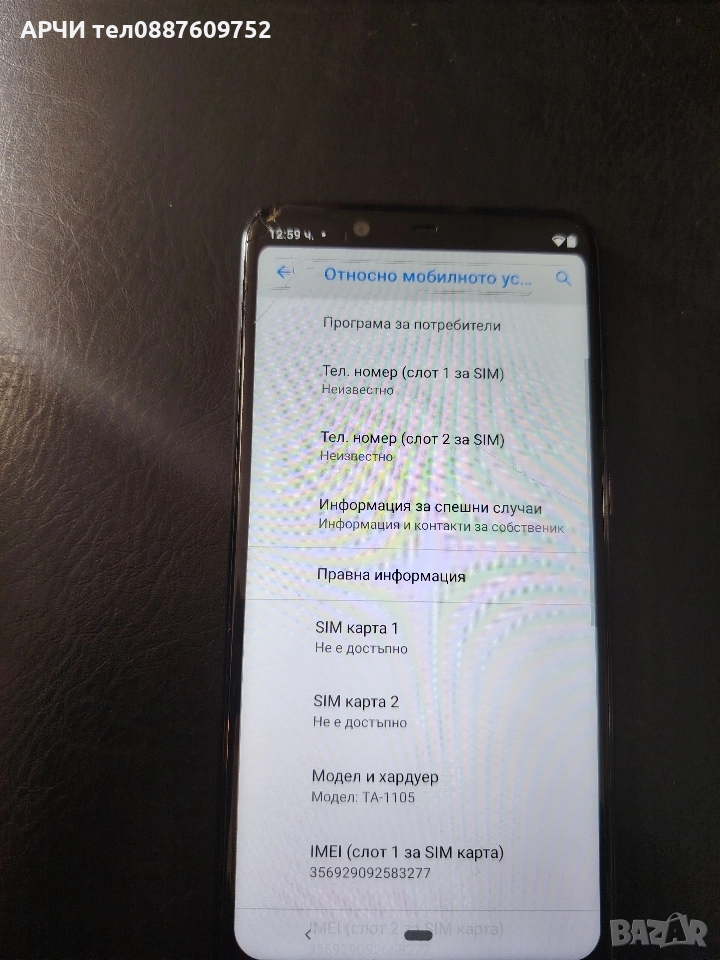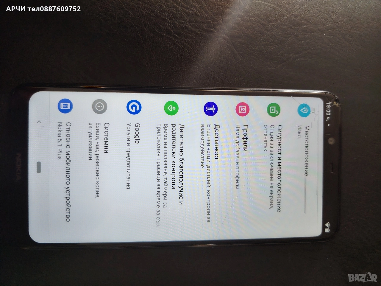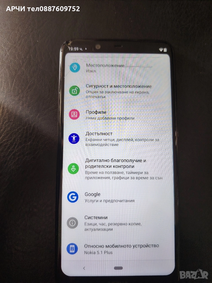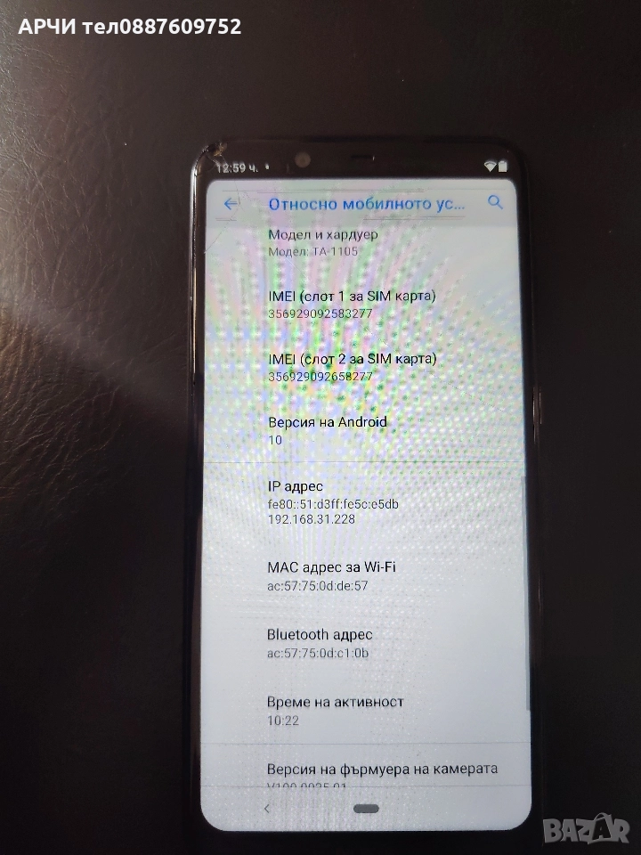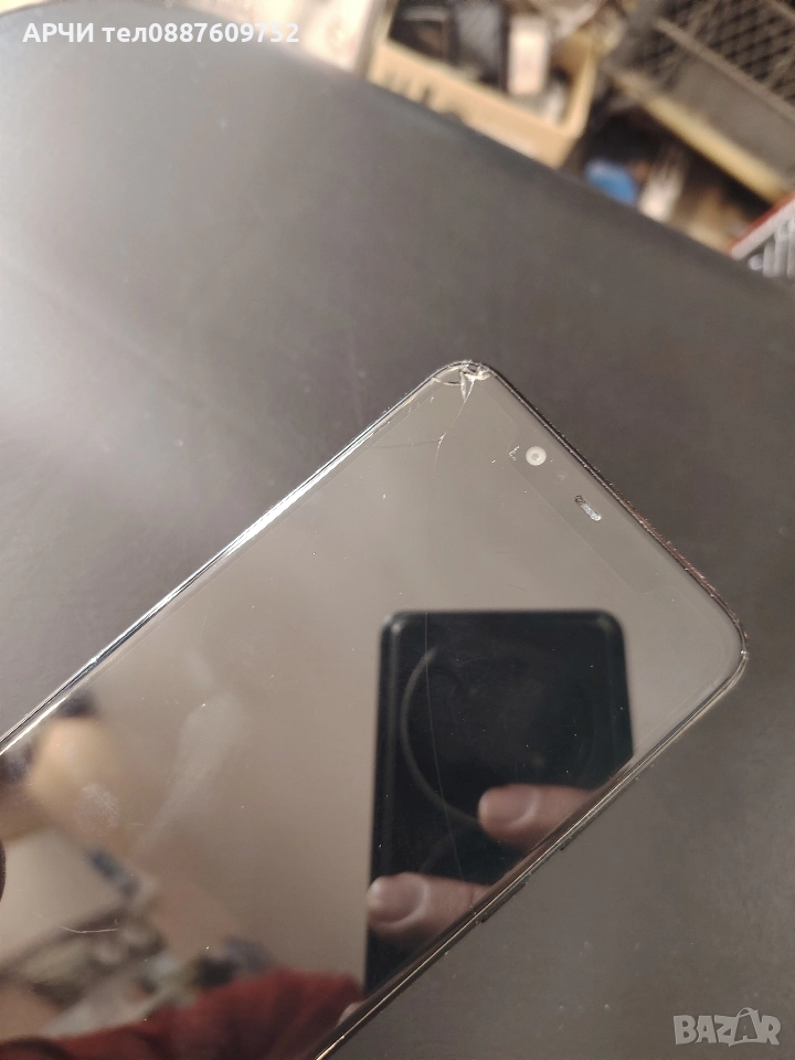 Работещ телефон с Андроид 10 горе в дясно му е спукано стъклото