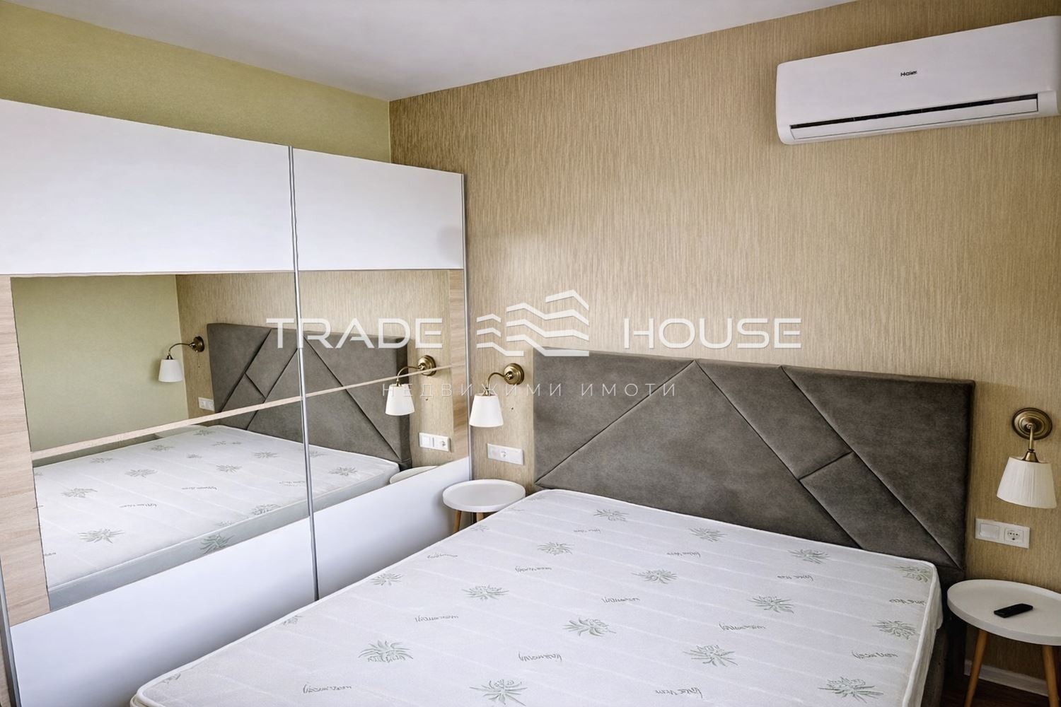 Жилището е изцяло модерно обзаведено, с дизайнерски мебели, вградена кухня с всички електроуреди, климатици във всяка стая, пералня, телевизори. Готово за незабавно нанасяне.
