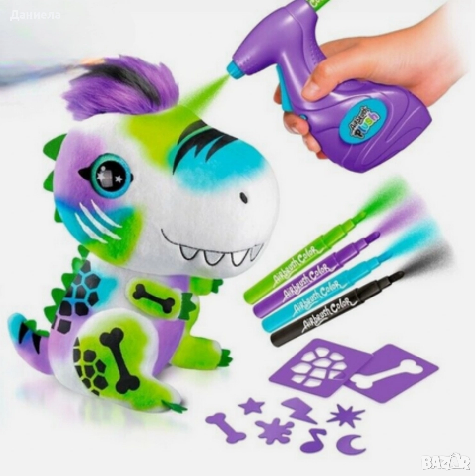 Плюшен динозавър за оцветяване с аерограф – креативен коледен подарък за деца