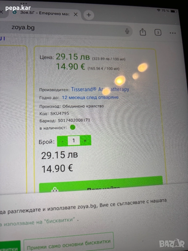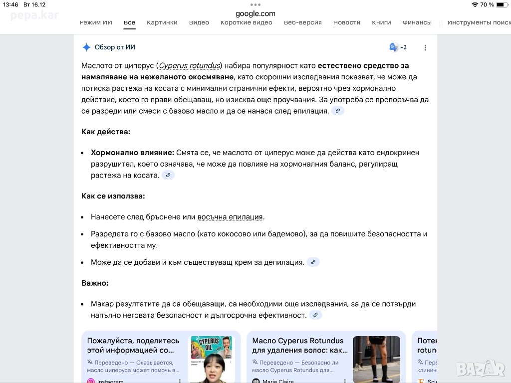 Масло Cypros против окосмяване Купено от Зоя. бг.25 лева
