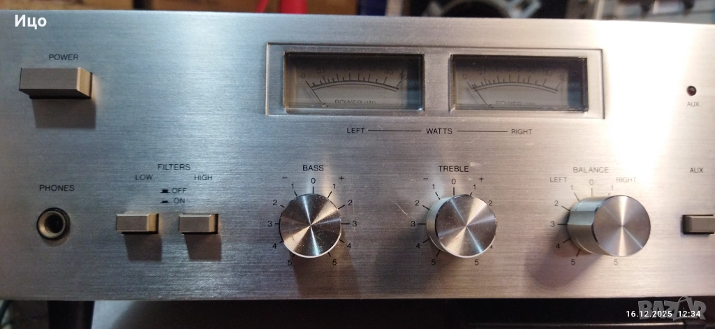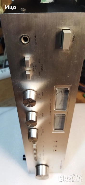 Стерео интегриран усилвател от Корея 70-80 год.2/25 W RMS.Среден клас усилвател но с изключително добра динамика и звучене.4ом,връзван е на различни колони,в момента на Амфитони звука е изключителен.Добър външен вид,панела отпред без забележка леки надрасквания по капака.Тест на място.