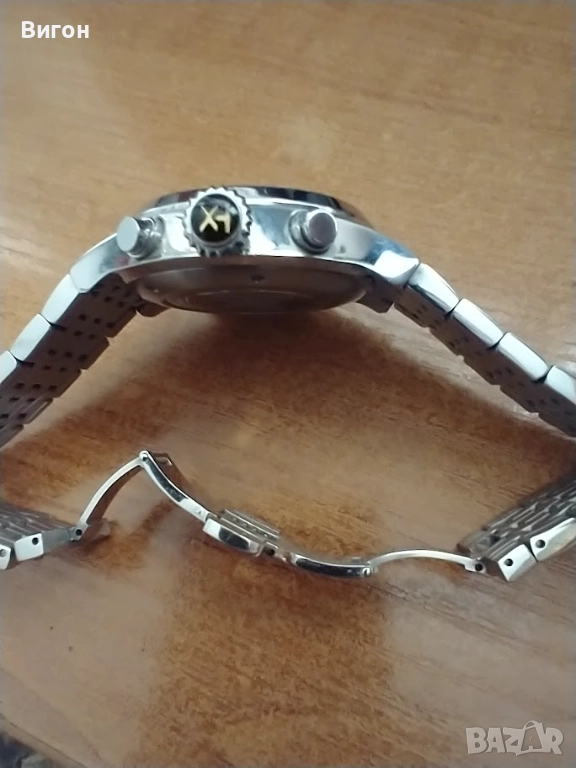 Мъжки модел на Timex от серията Световно време. Масивен с прецизен кварцов механизъм, със сапфир кристал стъкло и коронка на винт. Напълно изправен с отличен външен вид, защото на практика не е ползван. Идеален за китка с обиколка до 19 см(без да стяга), тъй като липсват допълнителни звена за верижката. Закопчалка тип пеперуда.