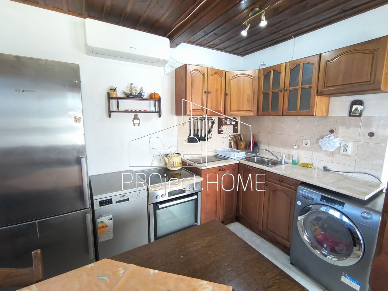 - Всекидневна - напълно оборудван кухненски ъгъл с фурна, котлони, хладилник, съдомиялна, пералня, масивна маса за хранене, диван, телевизор, климатик и голям вграден трикрилен гардероб 🍽️🧺🚪
