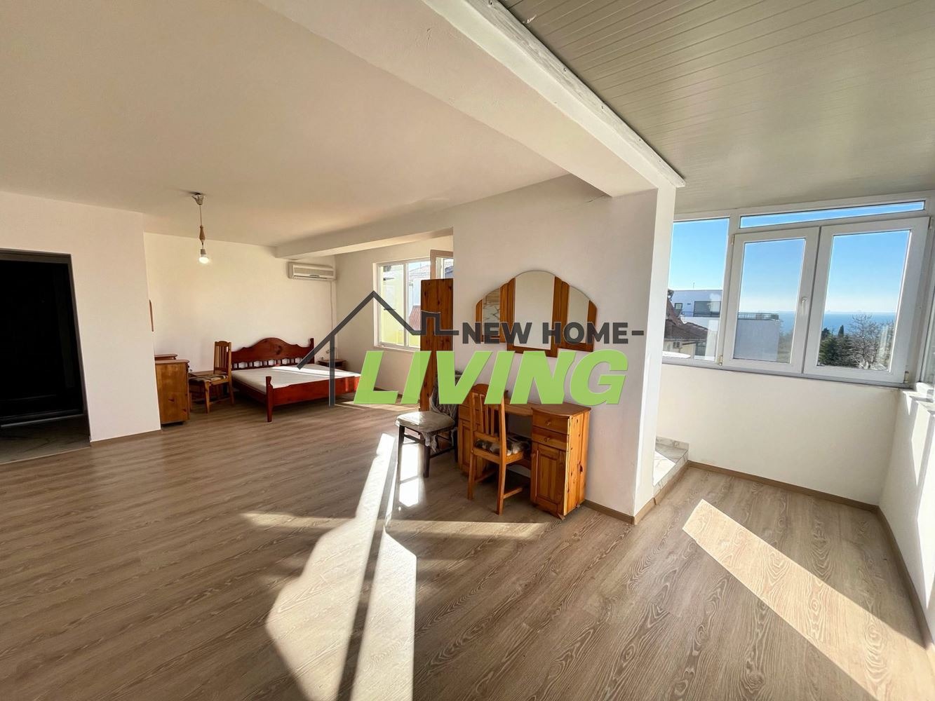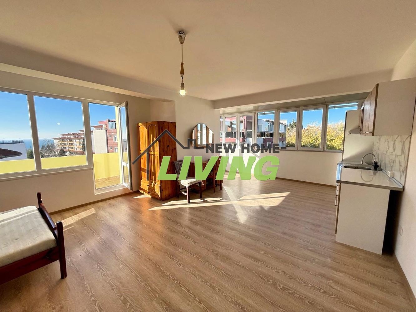 Разпределение: входно антре, баня с тоалетна, голяма и просторна стая със спалня, кухненски бокс и излаз от две места на тераса, с гледка към морето.