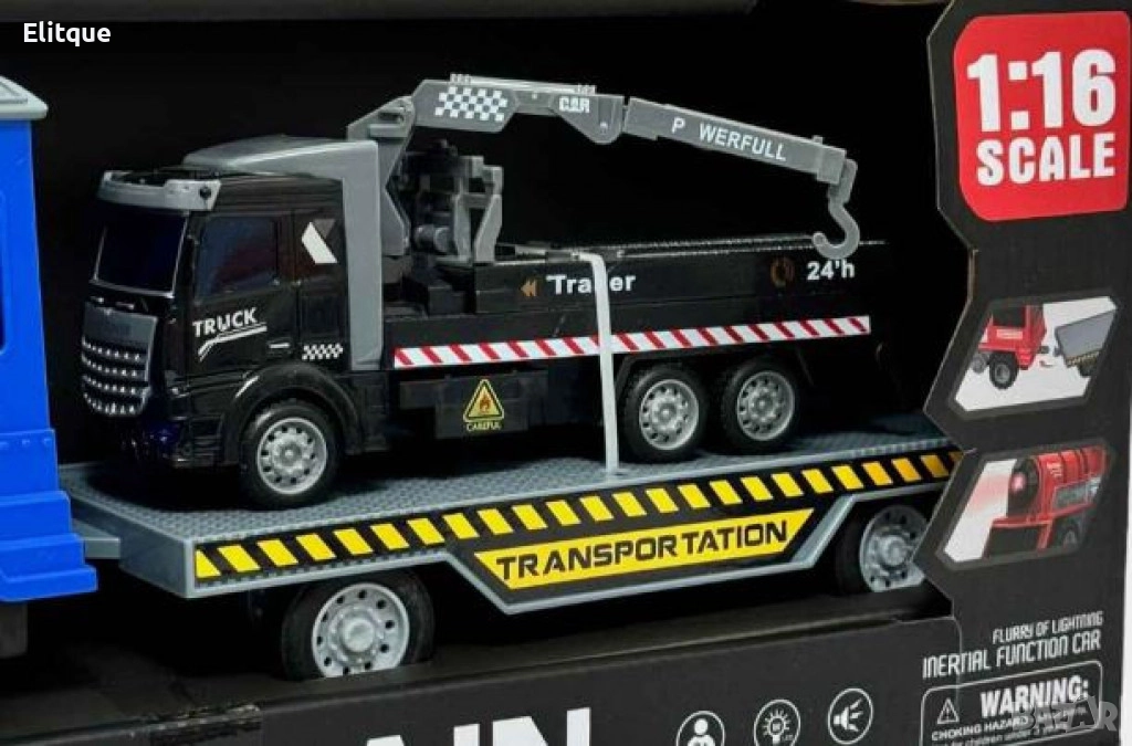Парен локомотив с ремарке и камион влекач