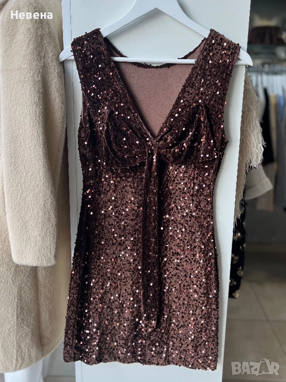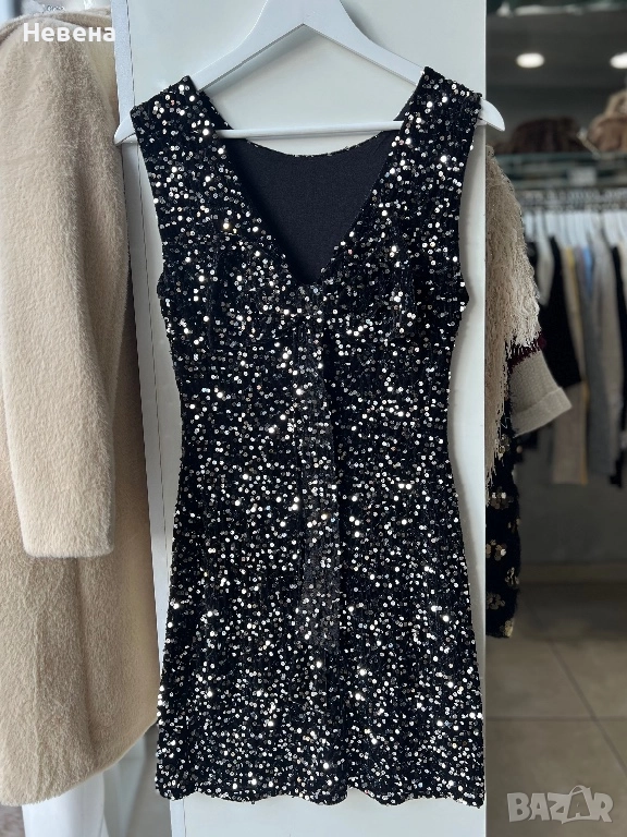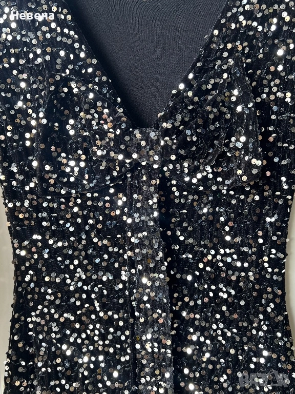 Дамска рокля от меко кадифе с паети. Еластична материя. Гръдната обиколка е до 92 см.