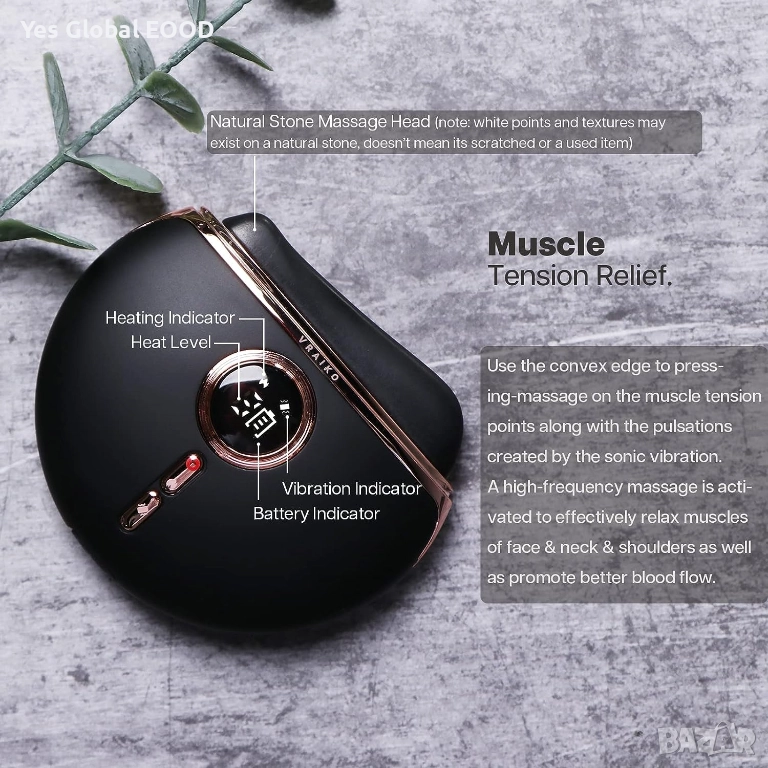 VRAIKO ECLIPSE електрически гуаша масажор с топлина и вибрация