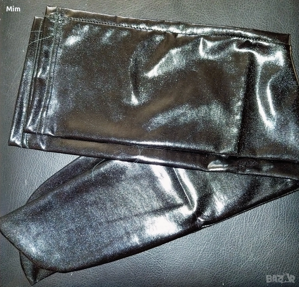 2- Дамски черни чорапи от еко кожа имитира лак без стъпало,дължина 67 см ,в бедрото от 30 до 40 см еластичност
