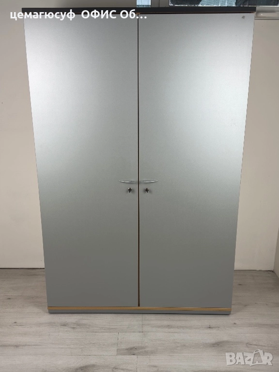 Практичен шкаф за съхранение на папки, книги и други принадлежности. Сив цвят, с Подходящ за дома или офиса. Изработен от качествени материали, МДФ с две врати и вътрешни рафтове за организация на пространството. но в добро състояние.