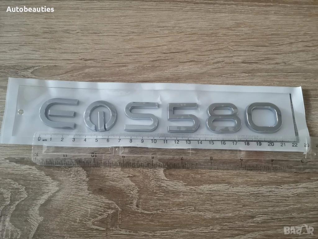 Нов надпис EQS 580 за Mercedes Benz в сребрист гланц. Размерите са дадени на снимките.