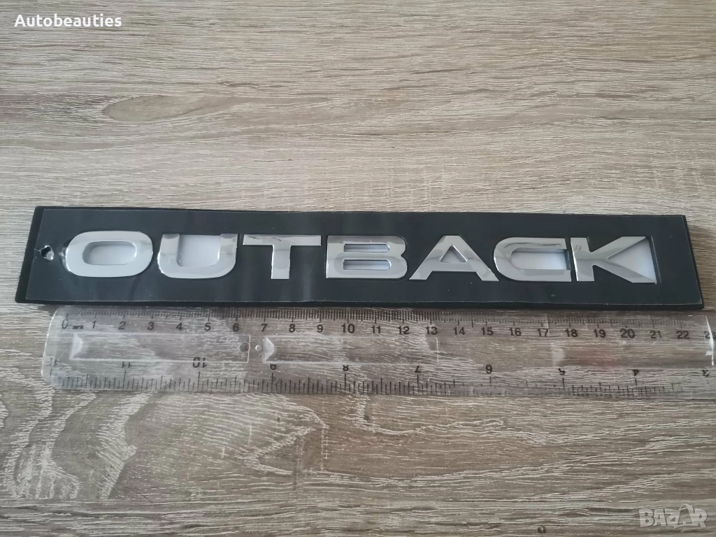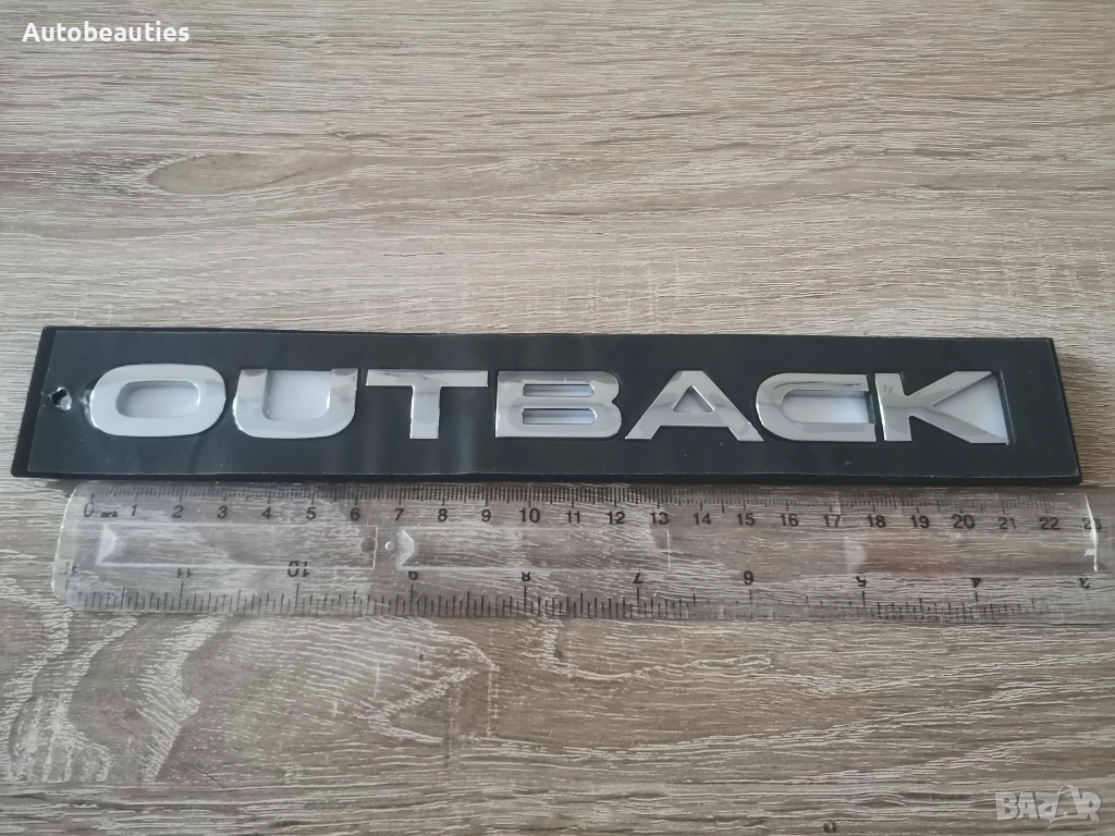 нов сребрист надпис за модела Outback на Subaru. Размерите са дадени на снимките.
