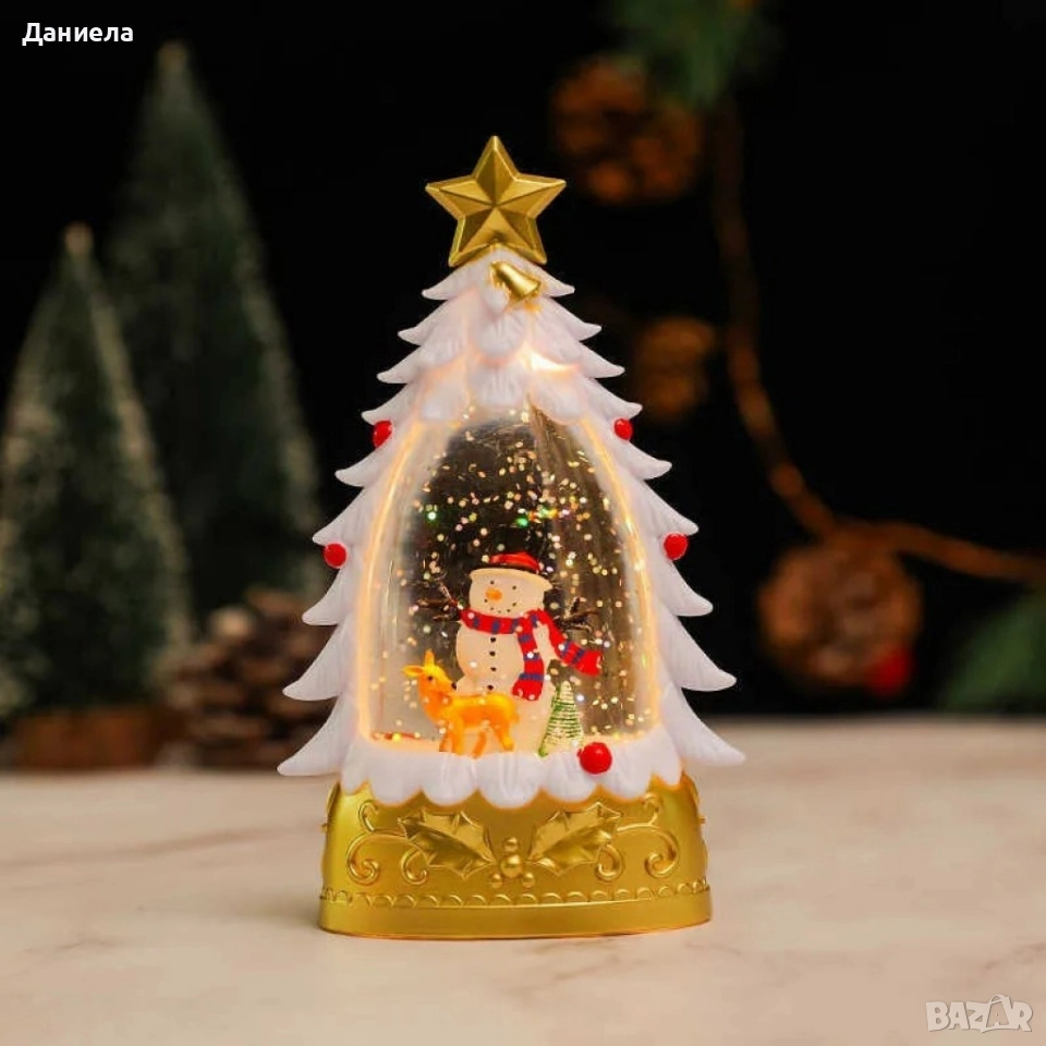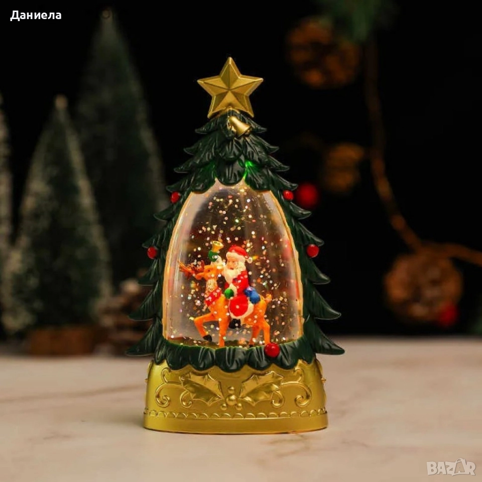 Коледна LED декоративна лампа с вода и брокат – празнична светлина и магия в елховиден дизайн