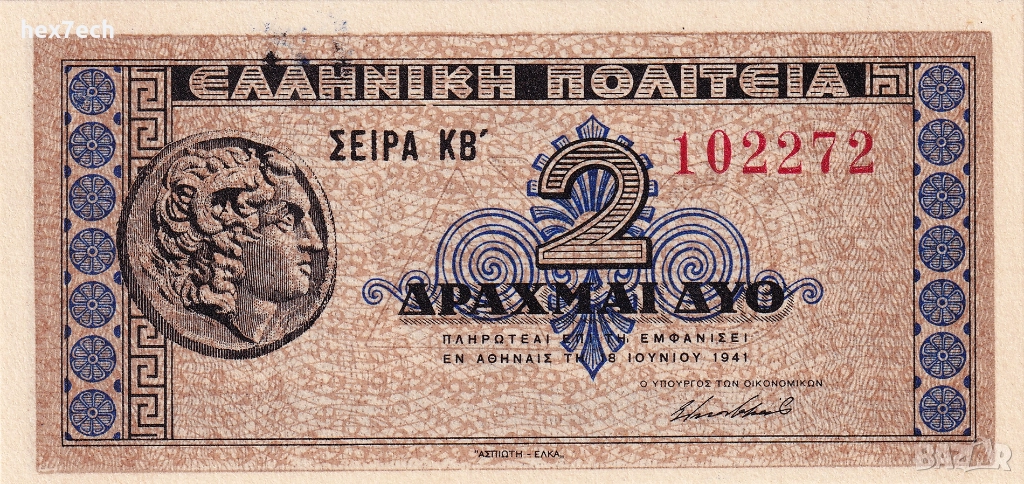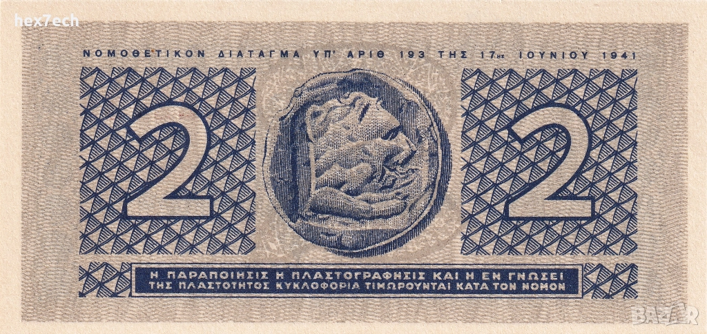 ❤️ ⭐ Гърция 1941 2 драхми UNC нова малка банкнота ⭐ ❤️, снимка 1 - Нумизматика и бонистика - 52816745 ❤️ ⭐ Гърция 1941 2 драхми UNC нова малка банкнота ⭐ ❤️, снимка 2 - Нумизматика и бонистика - 52816745 ❤️ ⭐ Гърция 1941 2 драхми UNC нова малка банкнота ⭐ ❤️, снимка 3 - Нумизматика и бонистика - 52816745 1/3