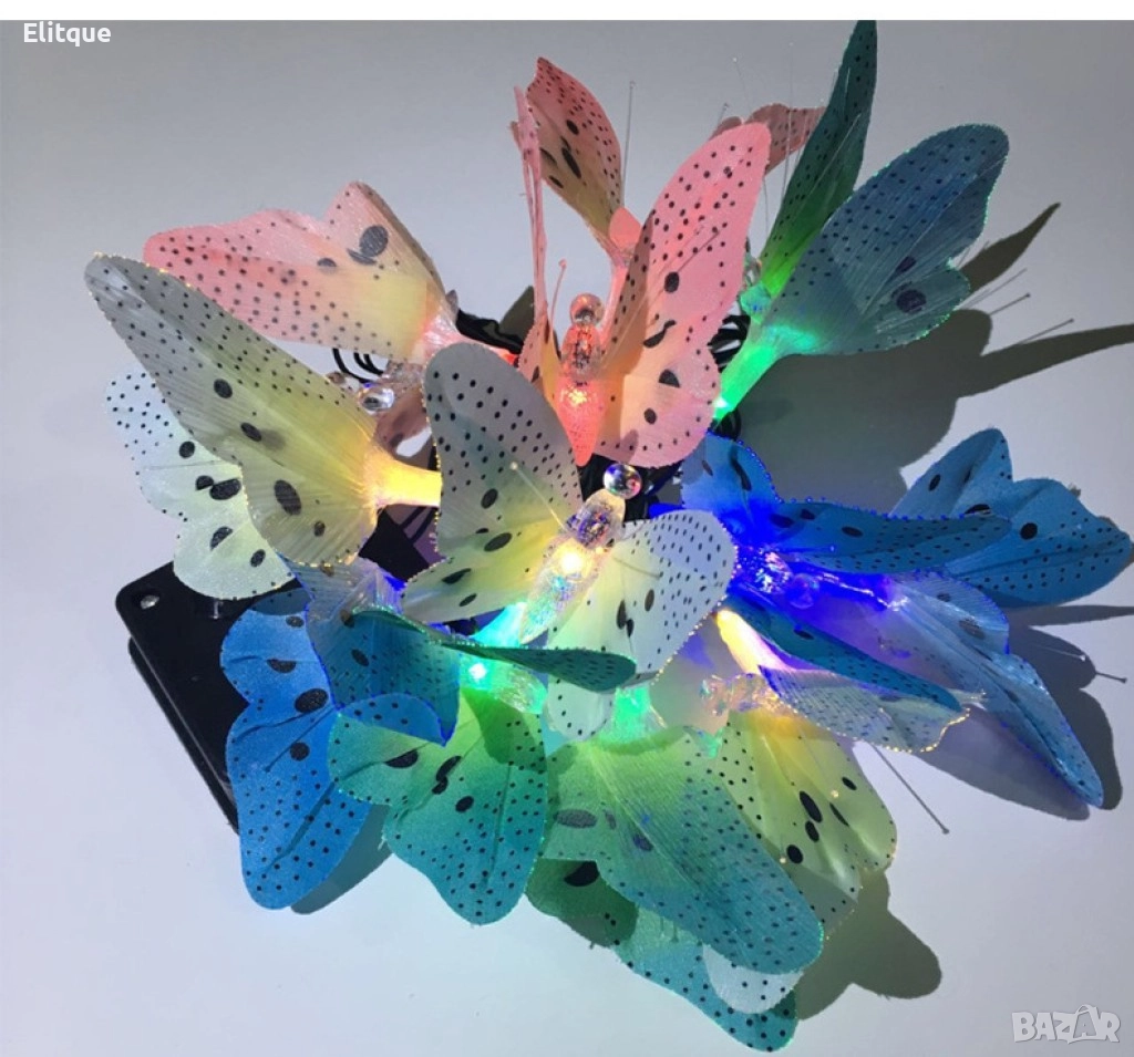 Верига от LED лампички за градината с пеперуди, 12 лампи