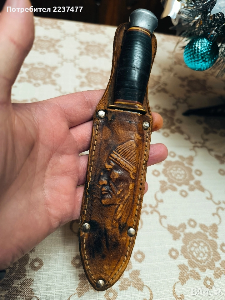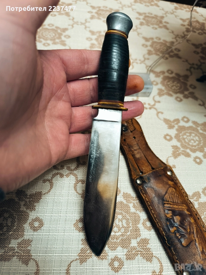 един красив винтидж модел на солинген за хвърляне ,много добро състояние както се вижда на снимката ,канията е здрава но горе кожата за закопчаване е скъсана ( може да се поправи не мисля че е нещо сложно ) ножа е стар и много красив както и здрав ,модел на над 50 години