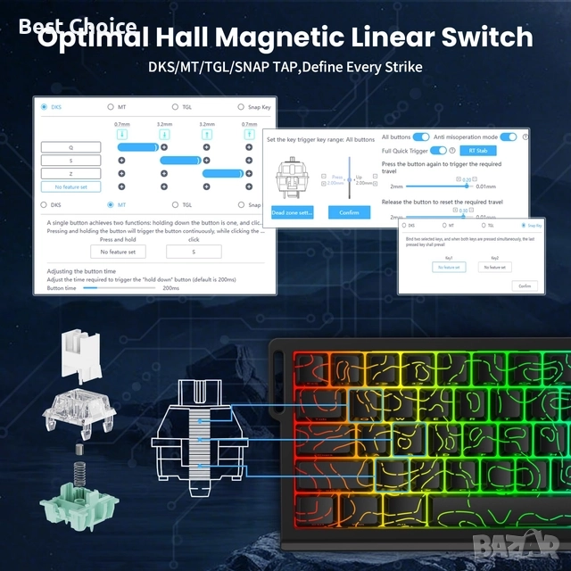 Оборудвана е с висококачествени, запоени механични превключватели.