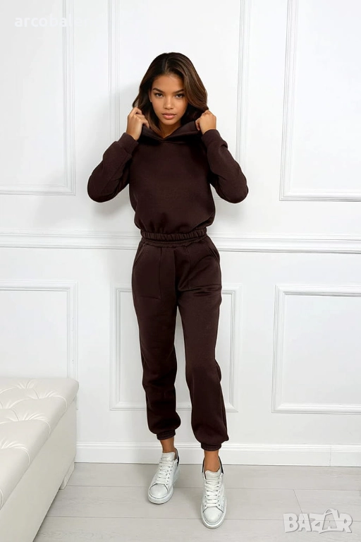Това е типичният комплект анцуг – изработен от висококачествена материя за суитчър. Материята „плюшено мече“ е мека, удобна и топла. Свободна, ежедневна кройка, но не и прекалено голяма!