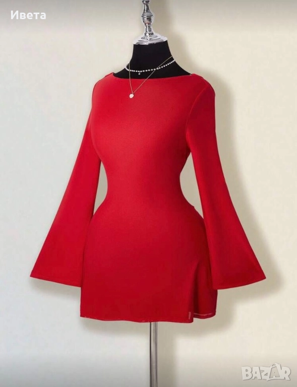 Дамска червена къса рокля с гол гръб. Много стилно и елегантна
