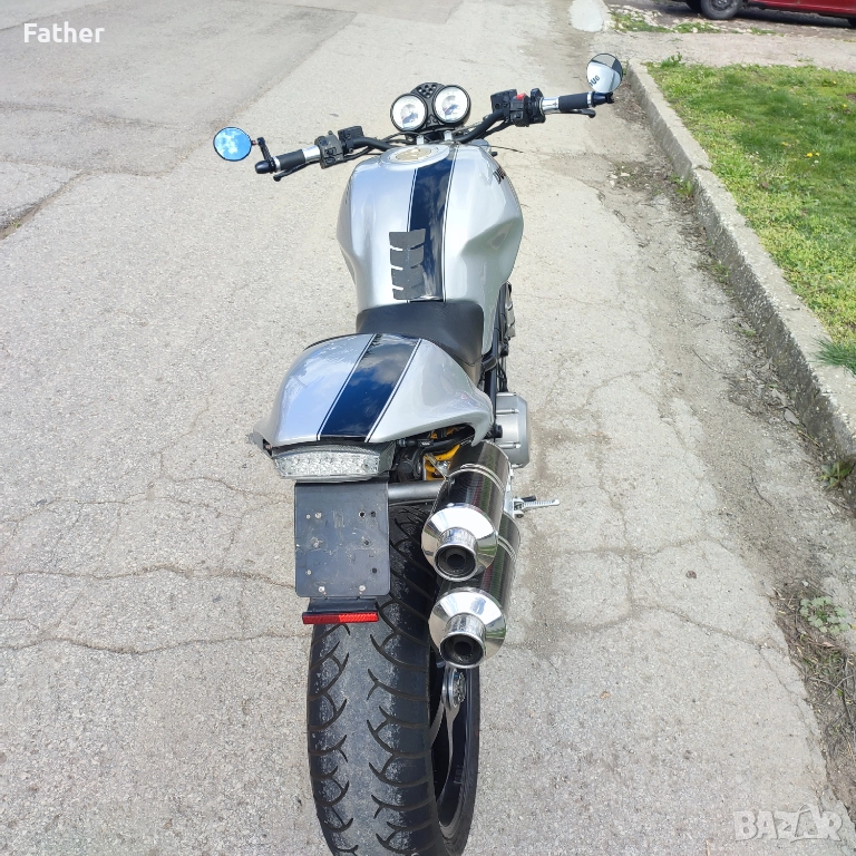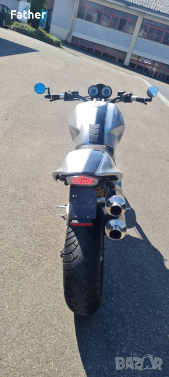 Нов внос от Швейцария с платено мито и редовни документи за регистрация. Много хубав мотор в отлично състояние. Правен е тунинг по него видно от снимките. Оригиналните гърнета са налични. Лед мигачи. Мотора е правен за сингъл езда но са му налични и задните степенки. Капака на седалката може да се свали лесно при желание да се ползва от двама. При интерес звънете. Бартери не приемам!!!