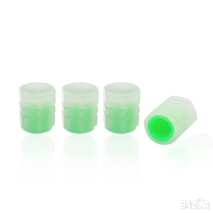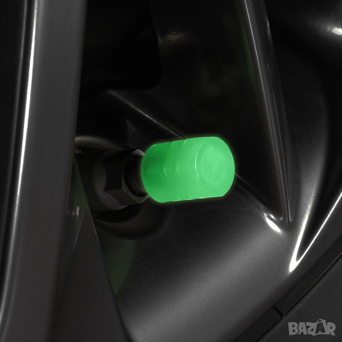 Светещите капачки за вентил в зелен цвят са атрактивен и практичен аксесоар, подходящ за автомобили, мотори и велосипеди.
