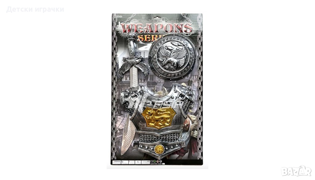 Комплект за млади рицари, идеален за забавление или фантастични балове. Почти всички момчета обичат да играят на рицари, воини или други герои. Децата могат да изразят своя вътрешен герой, като играят като малки воини.