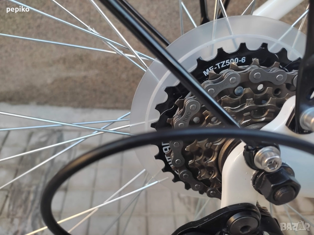 НОВ градски алуминиев велосипед SPORTEC 26 цола,олекотена алуминиева рамка от хидроформовани тръби 26 цола с 6 скорости,фиксирани превключватели SHIMANO TOURNEY 6,метални курбели STEEL,пластмасови педали,метални калници, стоманен багажник,заден отклонител SHIMANO TOURNEY,задни венци SHIMANO MF-TZ500,емайлирани черни главини предна с автомат за бърз монтаж и демонтаж,пластмасов цял предпазител на веригата,удобна седалка с пружини тампони,предна и задна вибрейк спирачки,алуминиеви усилени капли,никилирани спици,осветление от пред и от зад електронно,размер на рамката 48 х 58 см.тегло 14,5 кг.сваляща се кошница от пред.