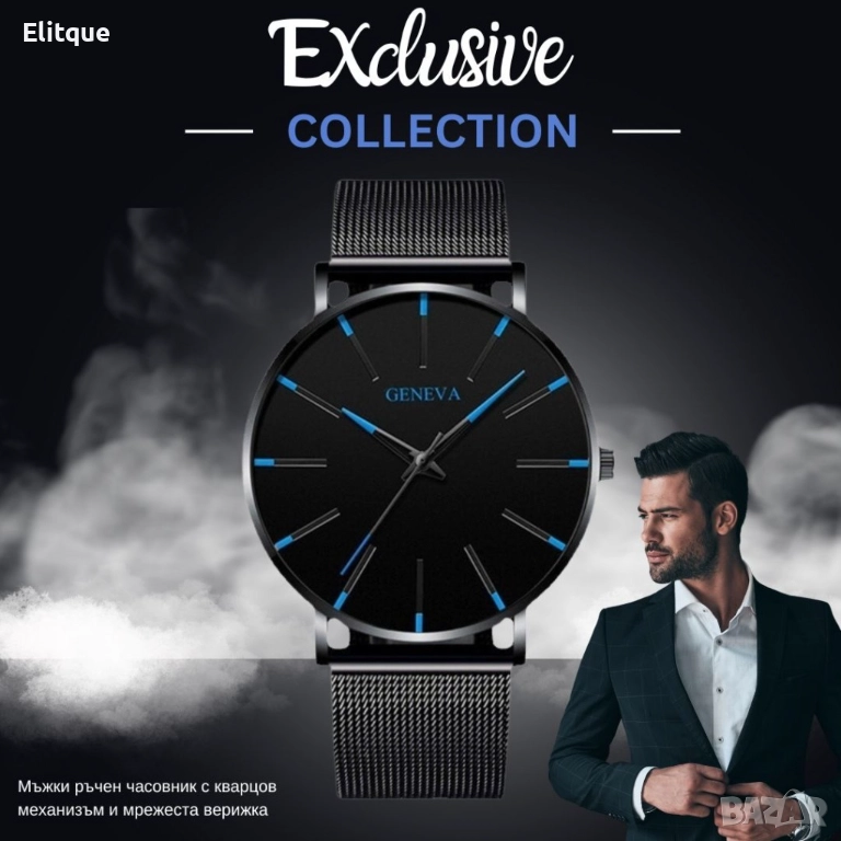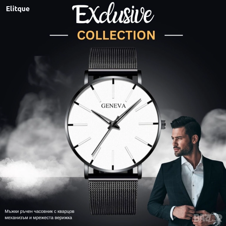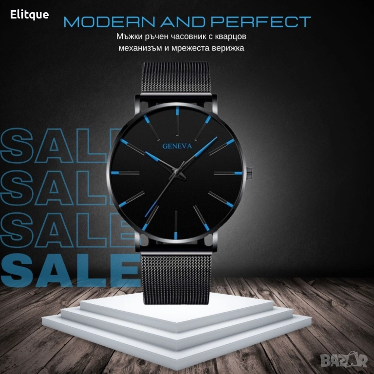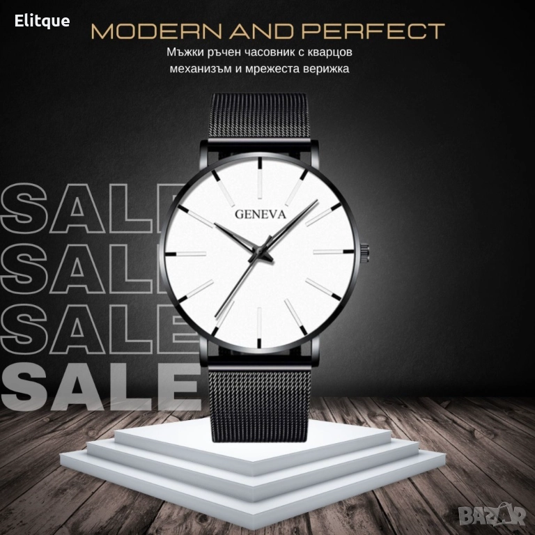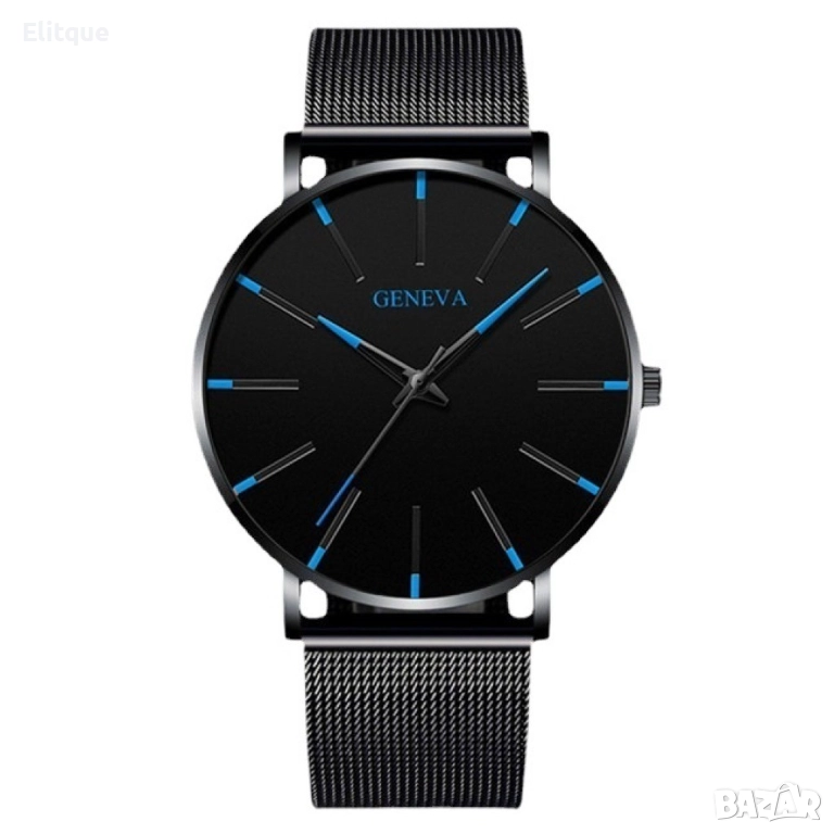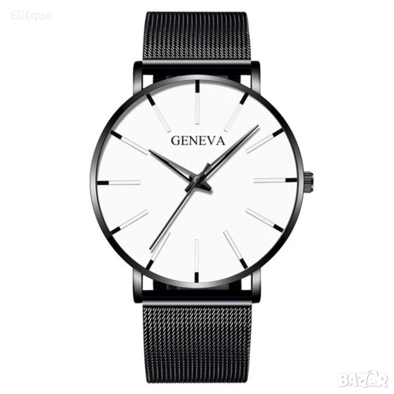 Мъжки ръчен часовник с кварцов механизъм и мрежеста верижка. Корпус и верижка, изработени от висококачествена стомата. Кварцов механизъм с аналогово показване на часа, тип линии. Кръгъл циферблат - 4 см. Стилен дизайн. Гаранция - 1 година. Варианти - бял или черен циферблат.