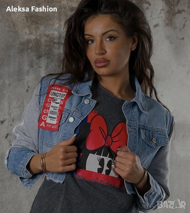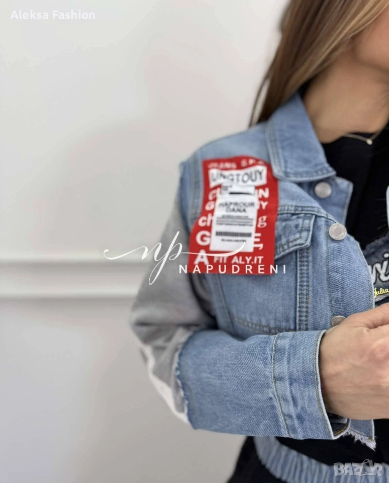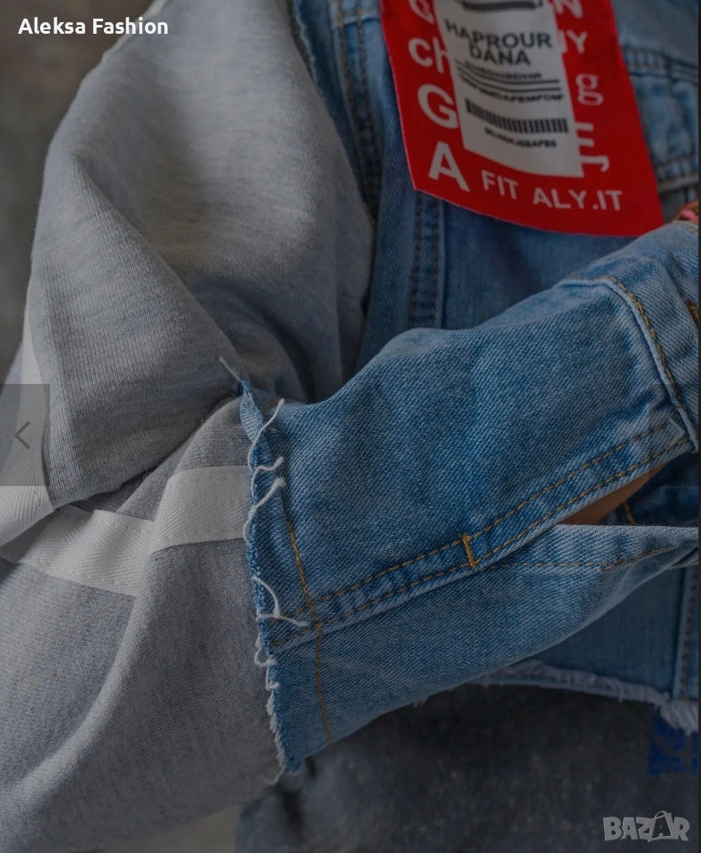 Дамско късо дънково яке с ръкави от плат → Обява 52819452