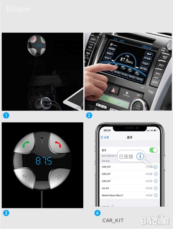 Този Bluetooth комплект за автомобили, е разработен за лесна инсталация в моторни превозни средства, за да се даде възможност за свободна работа с мобилни устройства, телефони и използване на индивидуални функции.