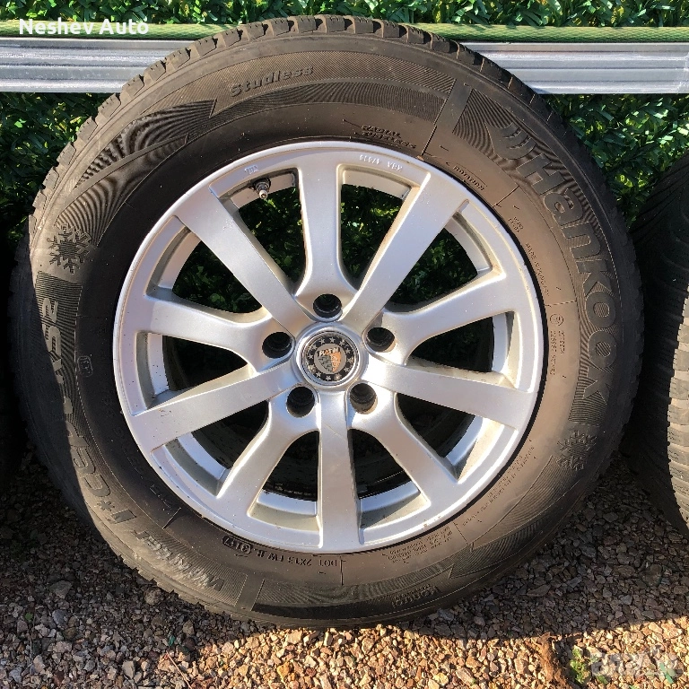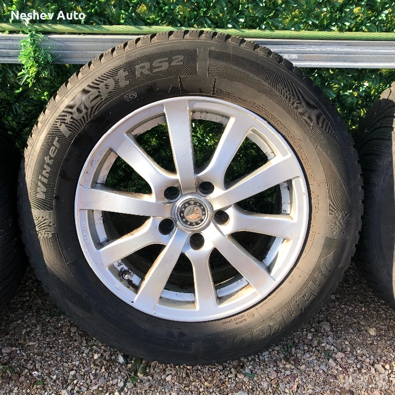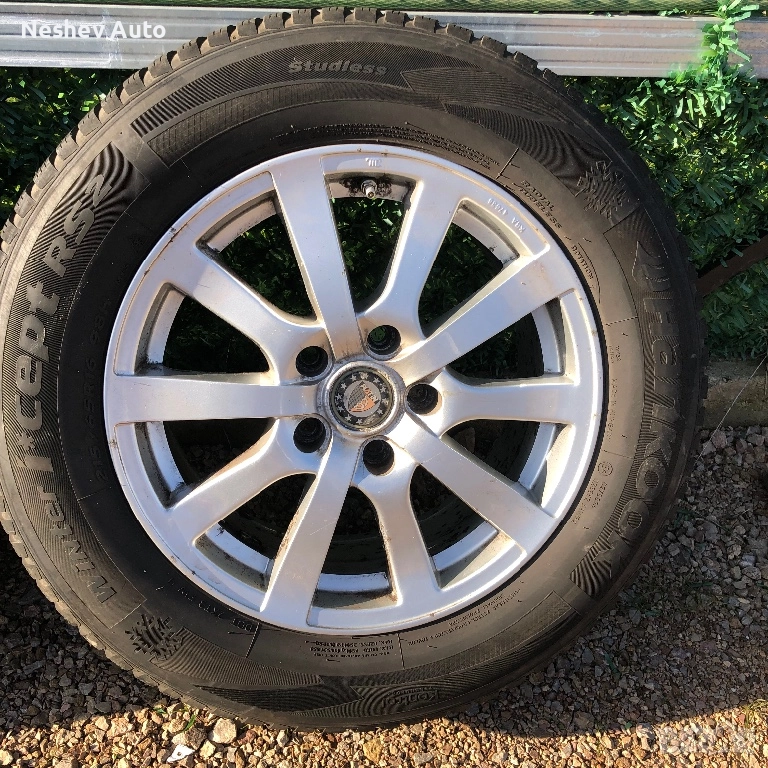 4бр. алуминиеви джанти от Nissan Qashqai 16 цола. Джанти те са с датчици за измерване на налягането нов внос без кривини и заварки. Леки забележки по боята. Гумите не са добри.