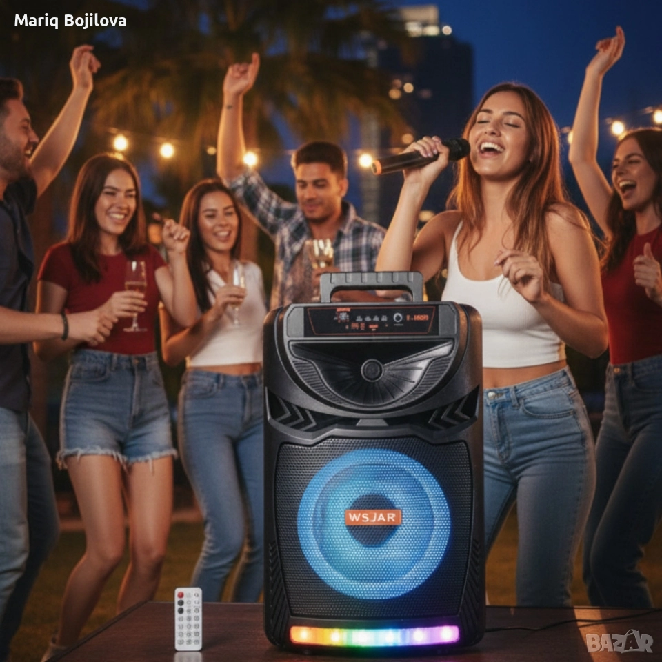 Bluetooth караоке колона с безжичен микрофон – 8,5″ говорител, LED светлини