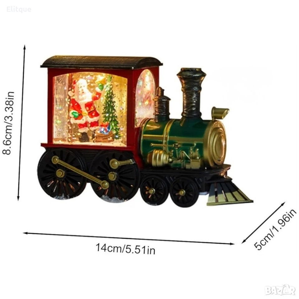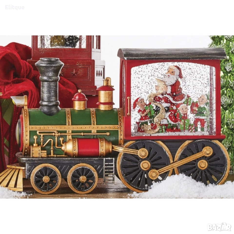 Коледна декоративна композиция „Влакът на Дядо Коледа“ с LED светлина, вода и брокат
