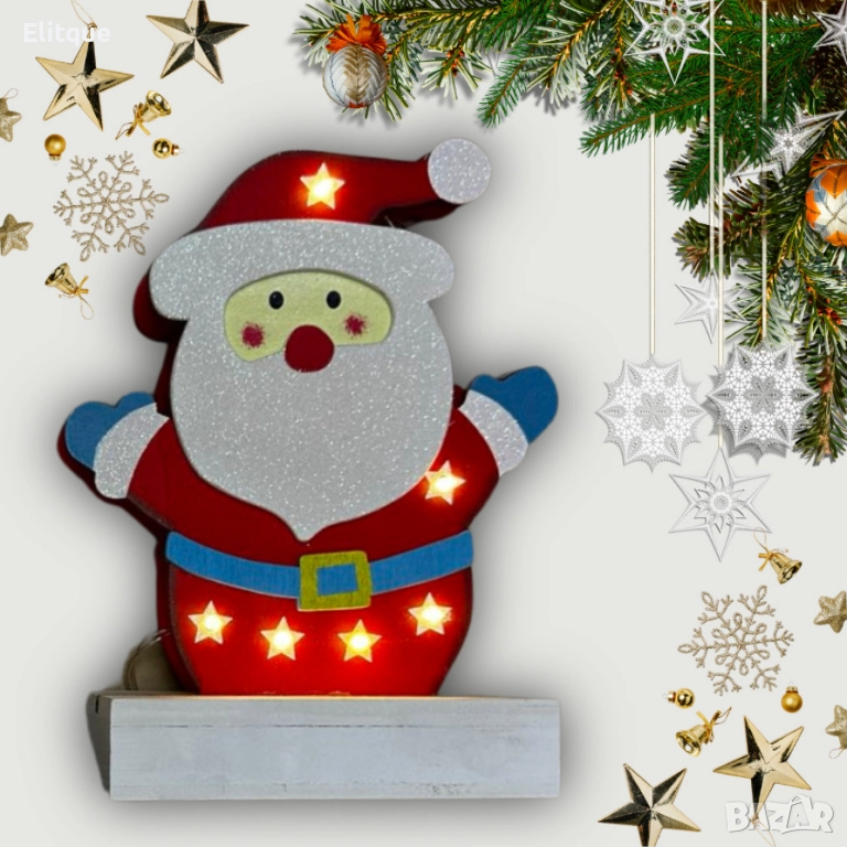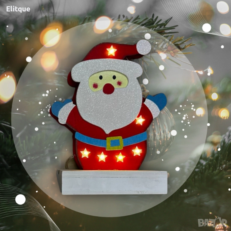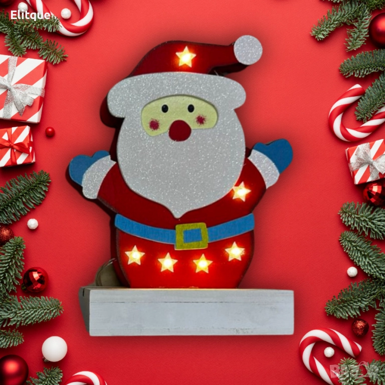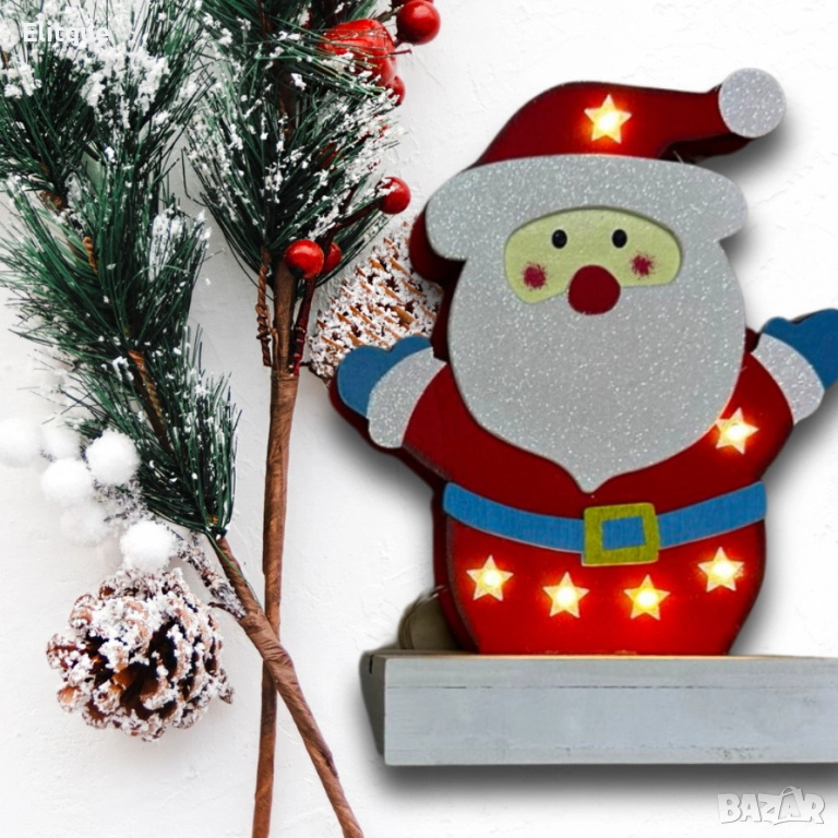 Светеща дървена фигурка във формата на Дядо Коледа.