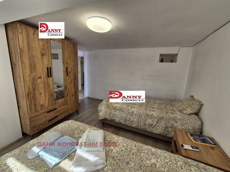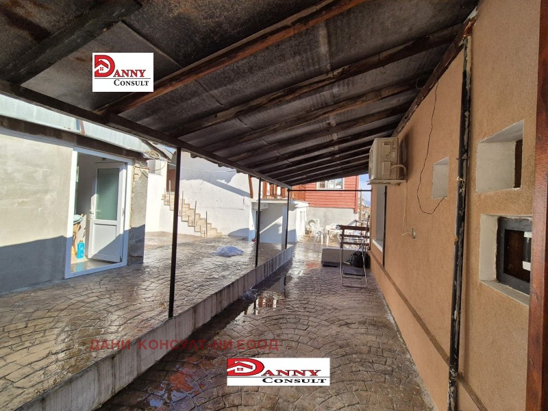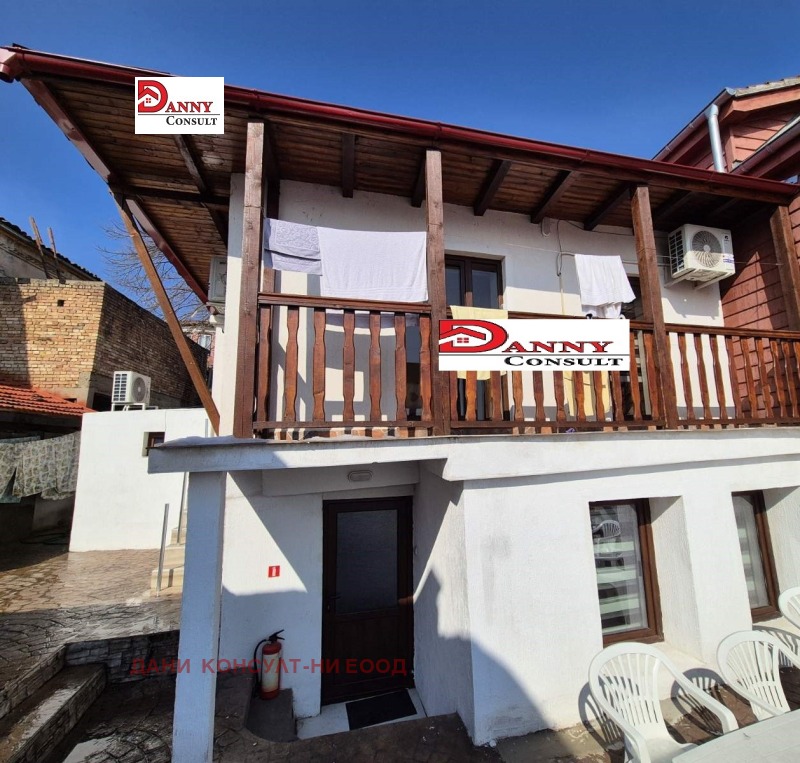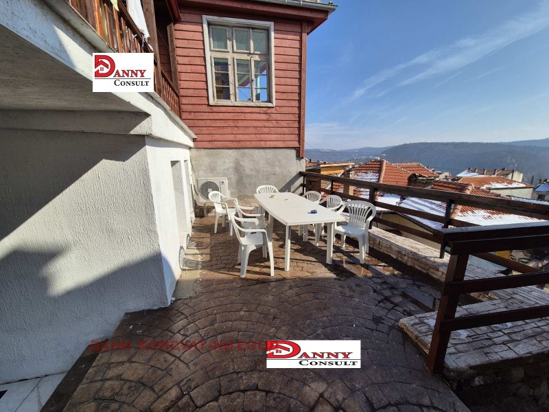 Агенция за недвижими имоти ДАНИ КОНСУЛТ предлага за продажба две къщи за гости с дворно място в центъра на гр. Велико Търново. Сградите са с РЗП 183 кв.м, с южно изложение, строителство тухла/гредоред, с прекрасна панорамна гледка, два входа и паркоместа. Намират се в централната част на града, на тиха и спокойна улица, в непосредствена близост до заведения, магазини, спирки, архитектурни и исторически забележителности. Имотът се състои от две сгради и включва: Двуетажна къща и прилежащите към нея сгради на допълващо застрояване с РЗП от 183 кв.м. и втори етаж от сграда със ЗП 78 кв.м. Етажът се състои от коридор, дневна с кухненска част, три спални, панорамна тераса, баня и тоалетна отделно. Разпределението на двуетажната къща е следното: първи етаж - коридор, спалня, кухненски бокс, хол и баня с тоалетна; Втори етаж - две спални, дневна с кухненски бокс, баня с тоалетна и панорамна тераса. В двора има още една постройка, която се състои от стая и санитарен възел. Сградите са санирани с 10 см. външна топлоизолация със силиконова мазилка, PVC дограма, подови настилки - ламинат и гранитогрес, PVC интериорни врати. Имотът е обзаведен и оборудван с всички необходими мебели и електроуреди, продава се във вида от снимките. Категоризиран е и функционира като къща за гости. Има регистрация в онлайн платформи за отдаване на стаи под наем и добър рейтинг. Дворното място е: самостоятелно дворно място от 191 кв.м. и 3/5 идеални части от дворно място с площ от 137 кв.м. Оформен е терасовидно, покрит е с щампован бетон, има панорамна площадка, навес, паркоместа и място за допълнително изграждане на още помещения.