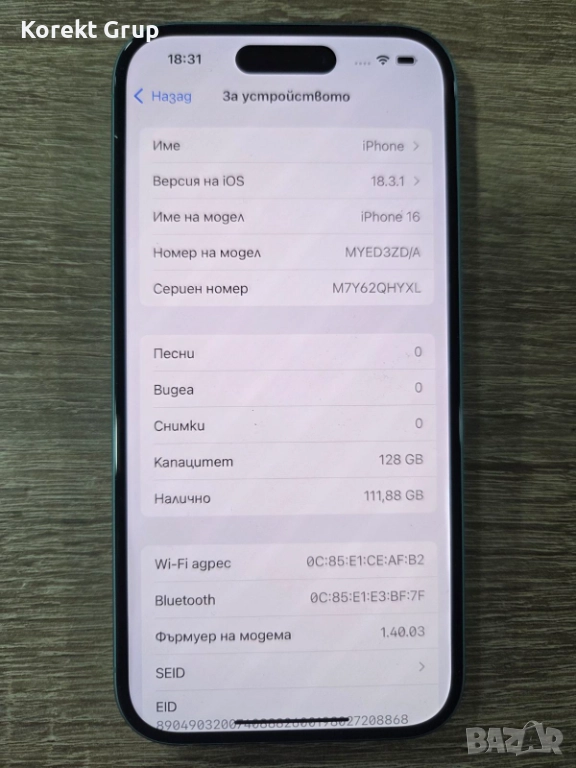 Продавам идеален iPhone 16 в син цвят с капацитет от 128 GB.Телефона е в перфектно състояние не различим от нов не идва с кутия и зарядно има само калъф към него но състоянието му е перфектно батерията е на 100%..