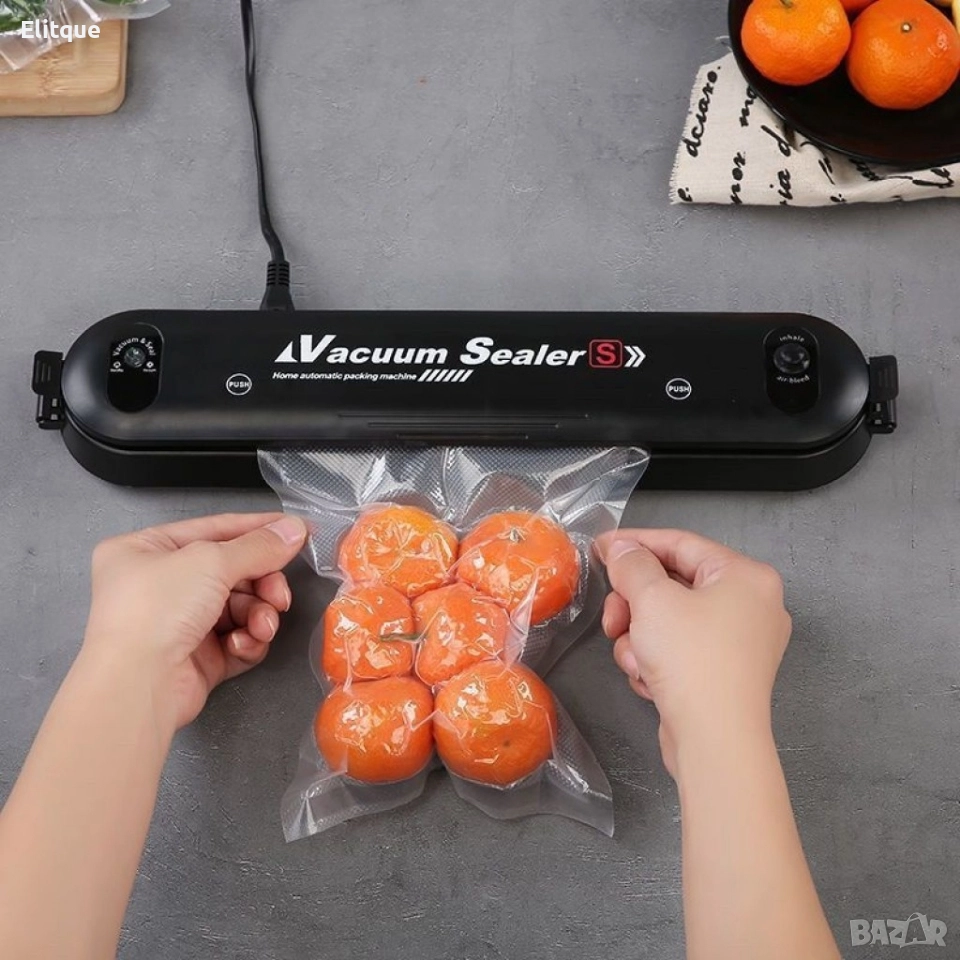 Машина за вакуумиране на опаковки TV159B. Страхотна, гъвкава машинка с която можете лесно да вакуумирате своите опаковки. Ако ви е омръзнало от развалящата се храна или трудното съхранение на всеки един продукт. А може би се чудите, как да ги разделите, тогава определено този продукт е за вас. Вакуумира месото, рибата, зеленчуците, бобовите храни за едно още по-добро съхранение на продуктите. Благодарние на уплътнителя който е изработен от висококачествена ABS пластмаса, с 2 в 1 двоен режим, го прави подходящ за сухи и влажни храни. С тази машинка това се случва много лесно, бързо и гъвкаво. Съхранете храната и продуктите си по най-добрия начин, използвайки това невероятно устройство. Широчина на торбичките: до 25см.