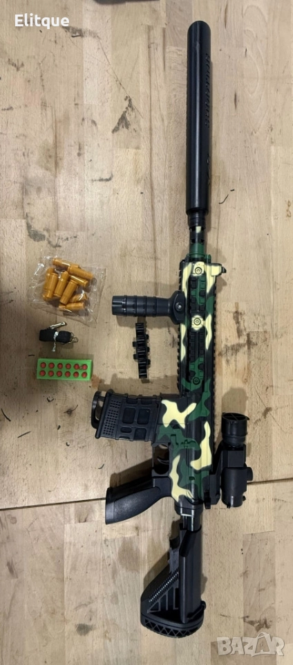 Детска играчка пушка автомат с меки патрони и допълнителни екстри