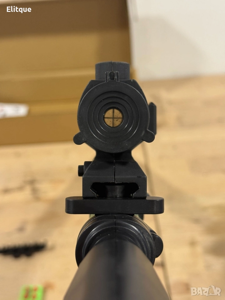 оптика с увеличение х 6; Долен пълнител – 1 брой; Допълнителна долна дръжка; Патрондаш и мека каишка;