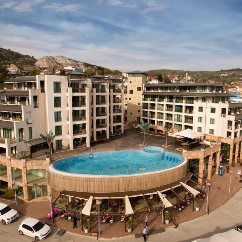 - разположен на първа линия, в непосредствена близост до яхтеното пристанище