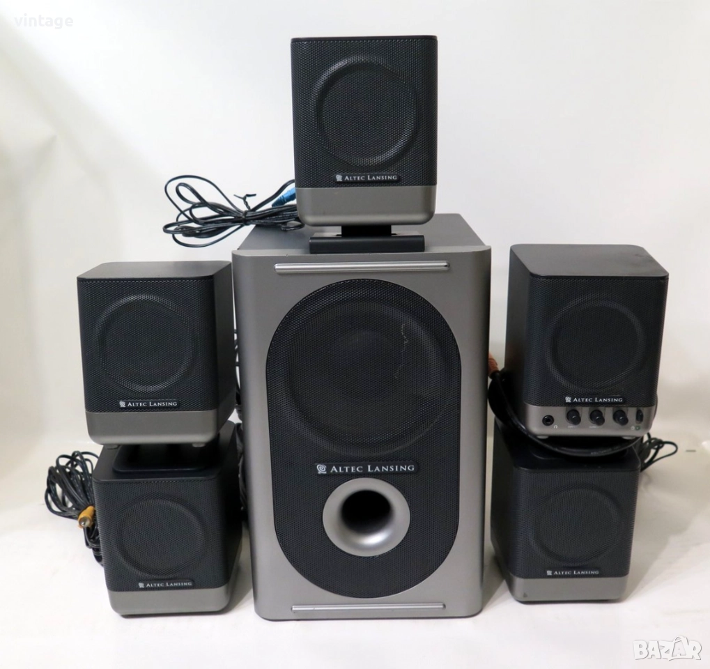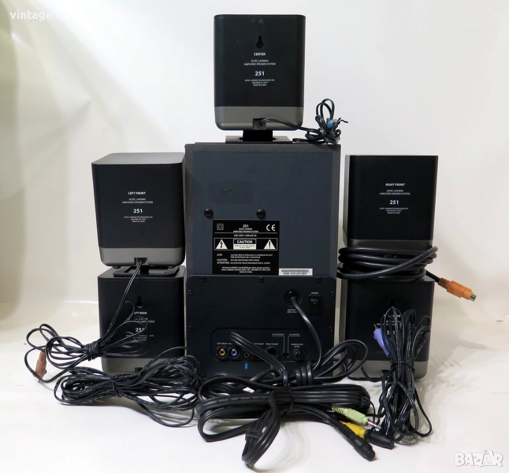 5.1 аудио система, субуфер с 5 бр. сателити, предназначена за компютри, но може да се ползва и друг източник. Отлична технически, много добър външен вид. Приложените снимки и видео са реални!