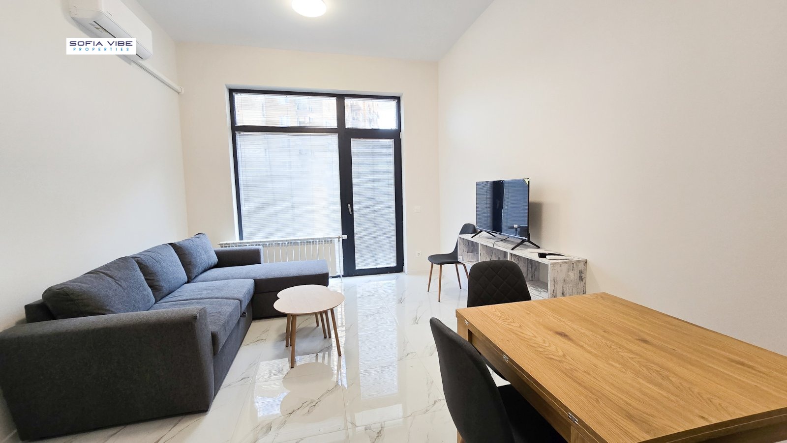 Sofia Vibe Properties offers for rent a brand-new, cozy one-bedroom apartment, located in a quiet and green area of Mladost 4 residential district, with excellently maintained green spaces around the building.