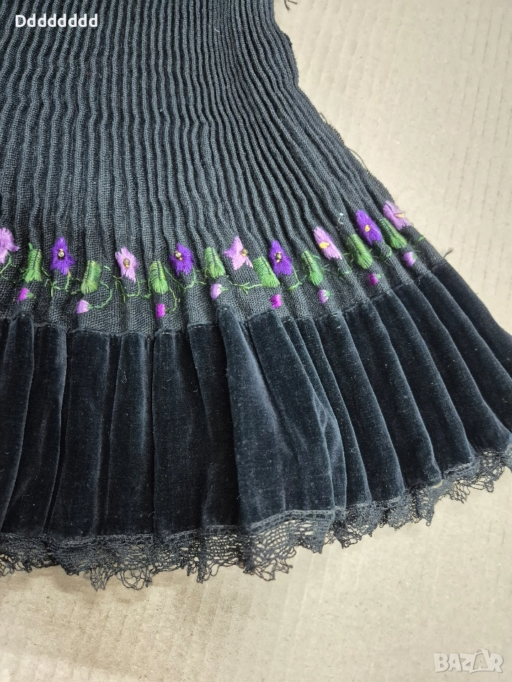 Автентичен Бръчник - Женска Народна носия от региона на Ловеч. Декориран е с копринена бродерия , кадифе и дантела. Размер : 2.10 м широк и 65 см дълъг. В талията можете да го наравите колкото желаете, за да ви е добре Не е ползван в перфектно състояние Подарявам прещ за него.