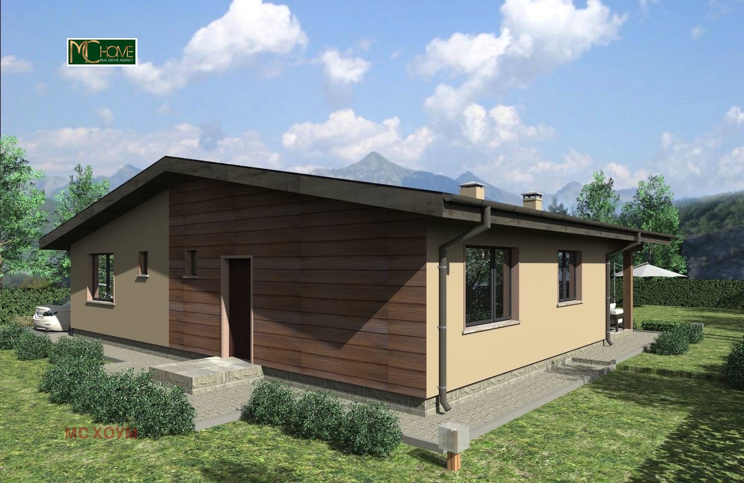 По проект къщата е на едно ниво и има следното разпределение: входно антре, голяма дневна с кухненски бокс и трапезария, 3 спални, едната от които със собствен санитарен възел, втора баня и тоалетна, 2 технически помещения.